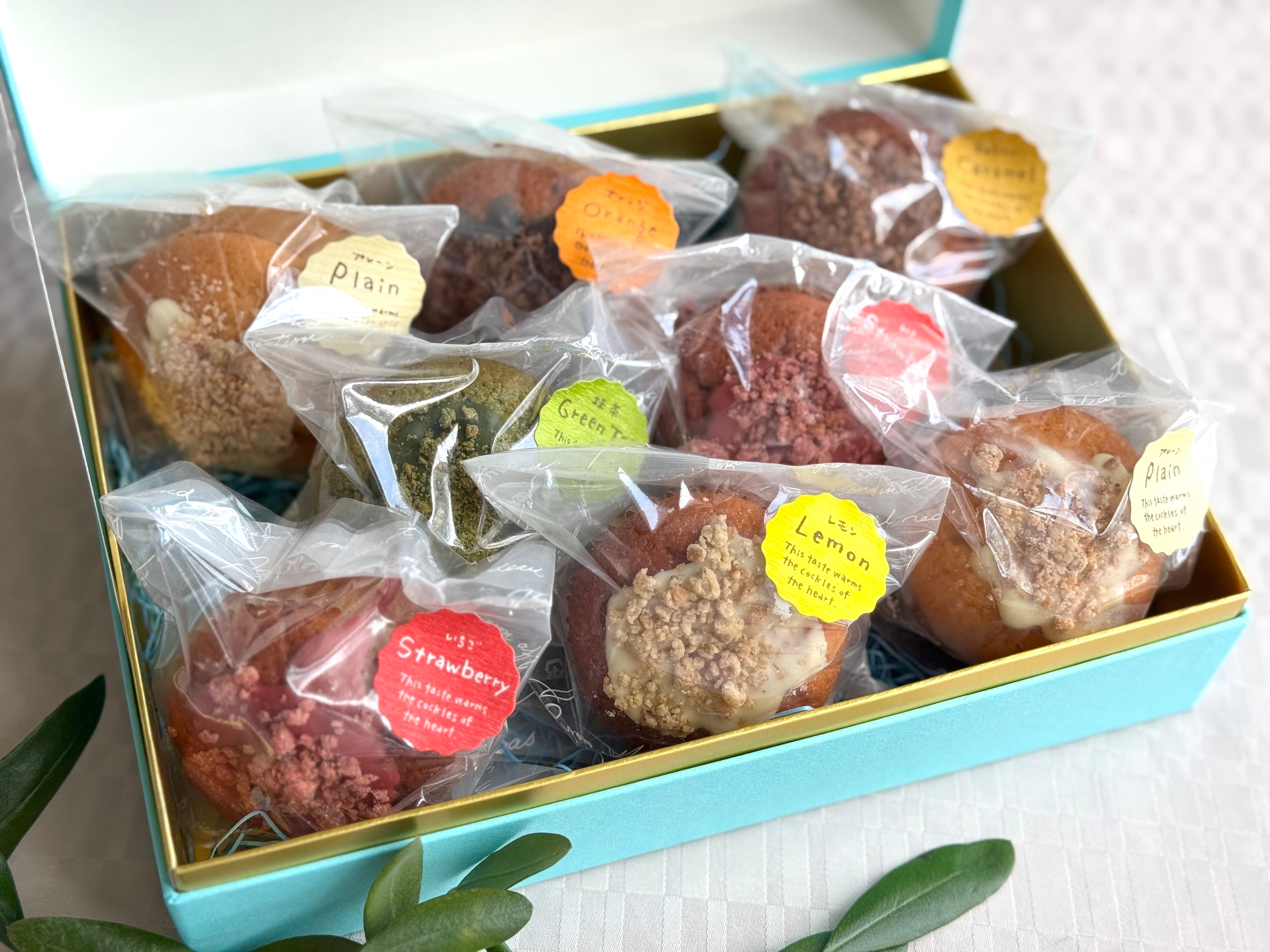 それぞれの風味とフィナンシェ特有のアーモンドの香りが口に広がります。
