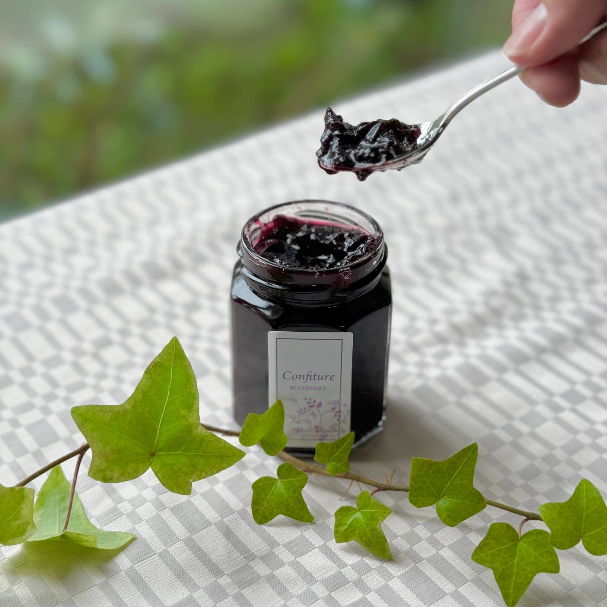 「リストランテ・パティスリーシムラ」のデザートでもご好評いただいているオリジナルのブルーベリーのコンフィチュールです。